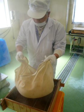 もうもうと湯気が立ち上がるなか、落とさぬようしっかりと布の両端を持って持ち上げる。