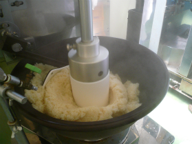 餅つき機の臼(うす)の様子 |