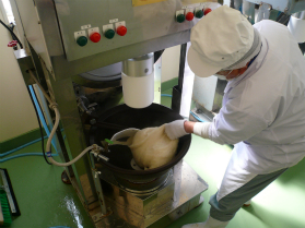 落とさないようにすばやく餅つき機へ |